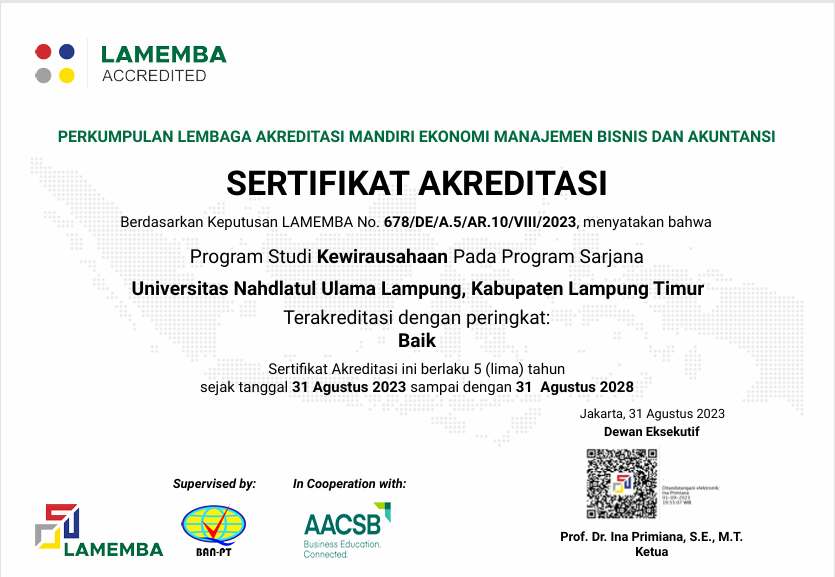 - Menyelenggarakan pendidikan kewirausahaan untuk menghasilkan lulusan yang mempunyai kompetensi keilmuan kewirausahaan, sikap dan etika kepemimpinan, berwawasan global dan berlandaskan nilai-nilai islam rahmatan lil‘alamin.